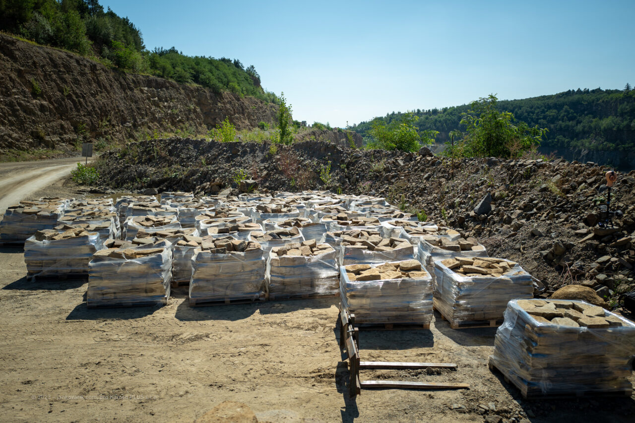 Myslíte, že byste takto zvládli v lomu pracovat každý den? No, určitě to není práce pro každého, ale nás to baví a v příjemném kolektivu a s dobrou náladou nám to jde pěkně od ruky. Každopádně vy si kámen můžete koupit už přetříděný a připravený pěkně na paletách, stačí je jen rozbalit a začít stavět 😉