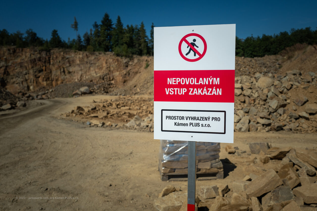 Pro výběr a třídění kamene máme v lomu vyhrazený prostor, který je označený cedulkami. Tento prostor slouží zároveň jako náš externí sklad materiálu. Mohou sem vstupovat jen naši zaměstnanci, případně výjimečně i zákazníci, a to v doprovodu našich zaměstnanců. Jde o relativně bezpečné místo, které máme v lomu vyhrazené pro tuto konkrétní činnost.
