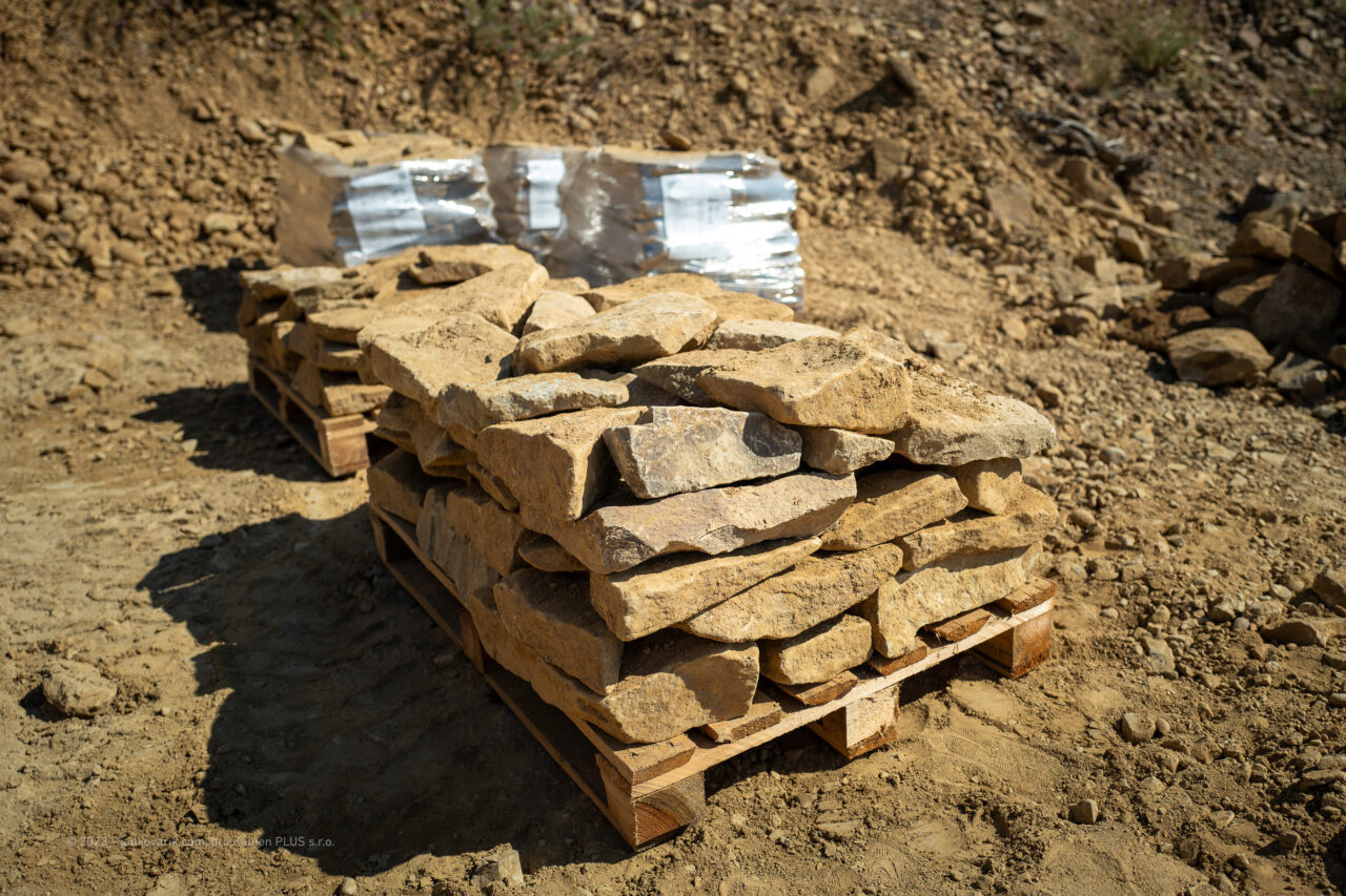 Všechny ručně vybírané kameny se tedy postupně skládají na palety standardní velikosti 120 x 80 cm, podle velikosti a druhu sortimentu.