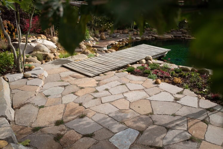 Každopádně když použijete dlažbu ze stejného materiálu, který už máte v zahradě, třeba jako zídku, solitér nebo skalku, výsledek bude zaručeně působit přirozeně.
