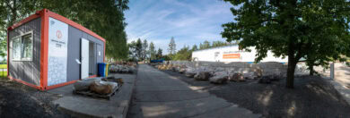 Panoramatický pohled na prodejní sklad v Lulči