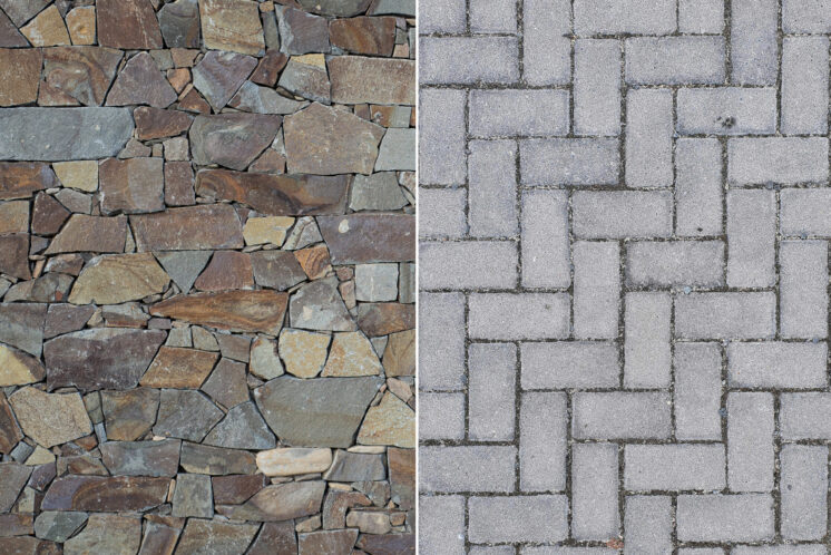Protože kámen tvoří příroda, nabízí širší spektrum unikátních barev a textur, které nelze s betonem srovnávat. Nicméně protože má přírodní kámen více či méně nepravidelné tvary (podle druhu kamene a způsobu jeho dodatečného opracování), bývá práce s ním časově náročnější, a tedy i o něco dražší.