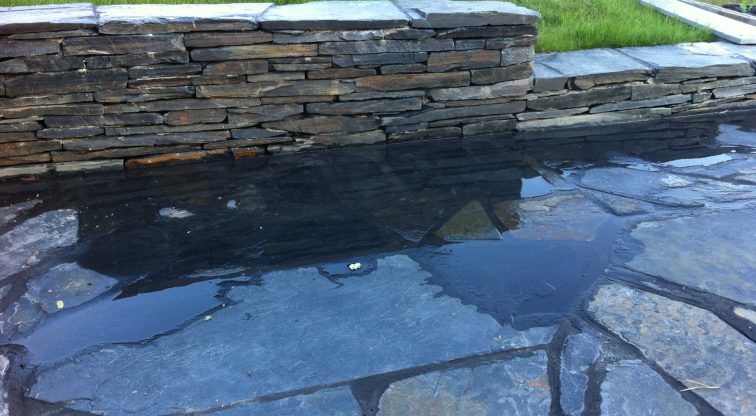 Břidlici štípeme i na velmi tenké pláty, můžete ji tedy použít jako tenký obklad tam kde nelze použít masivnější obklad či zeď z větších bloků.