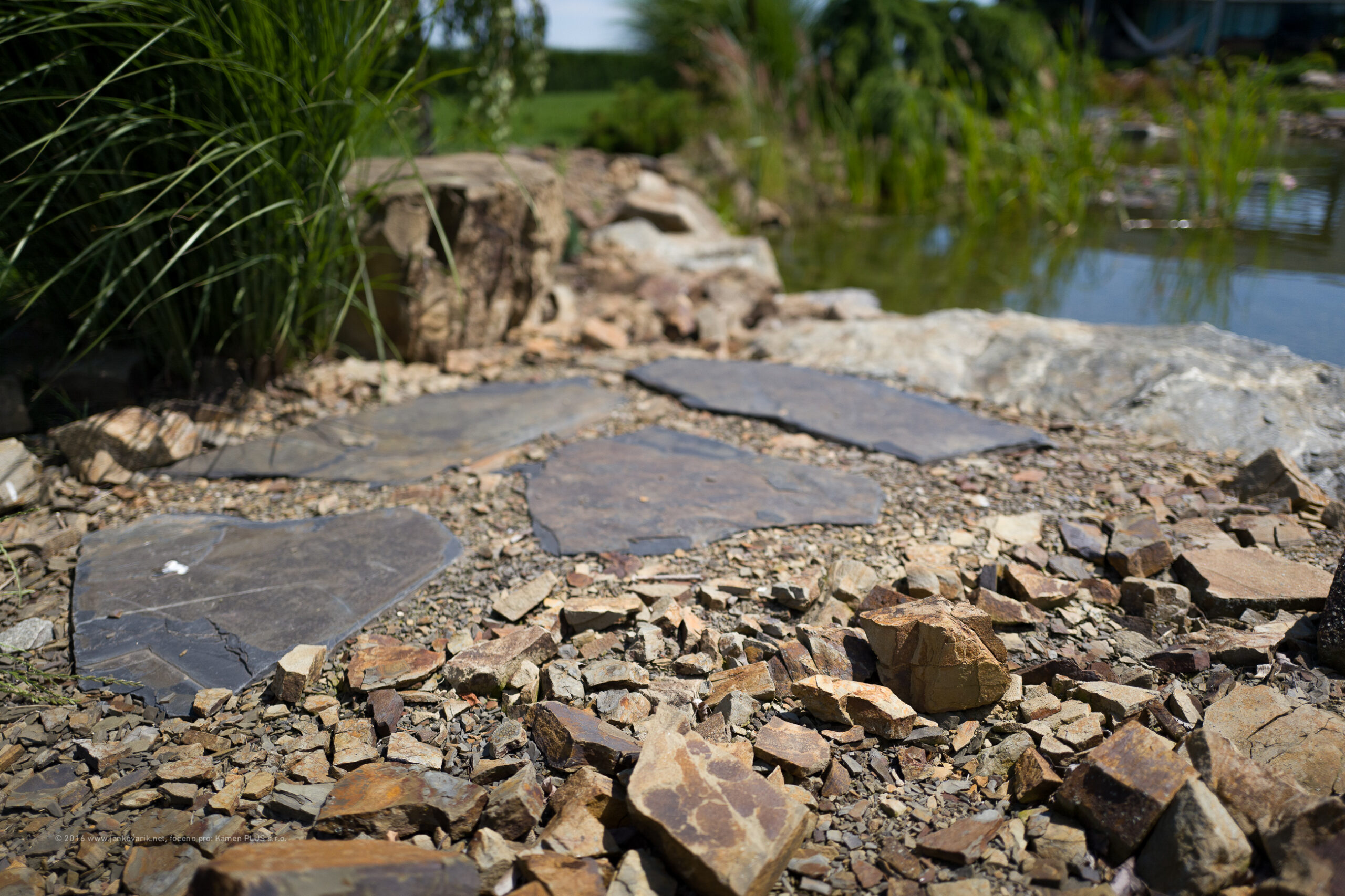 Masivnější obklady, stoly, vodní prvky a kaskády, atd.