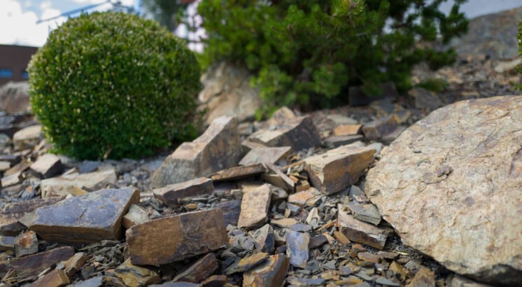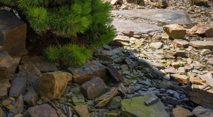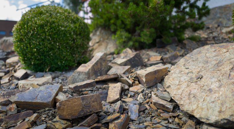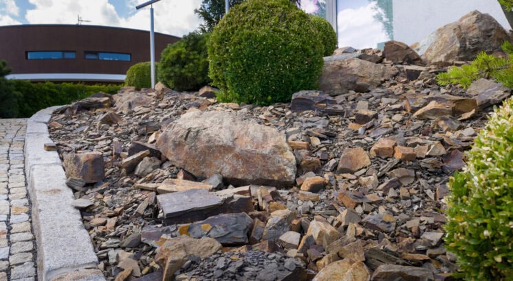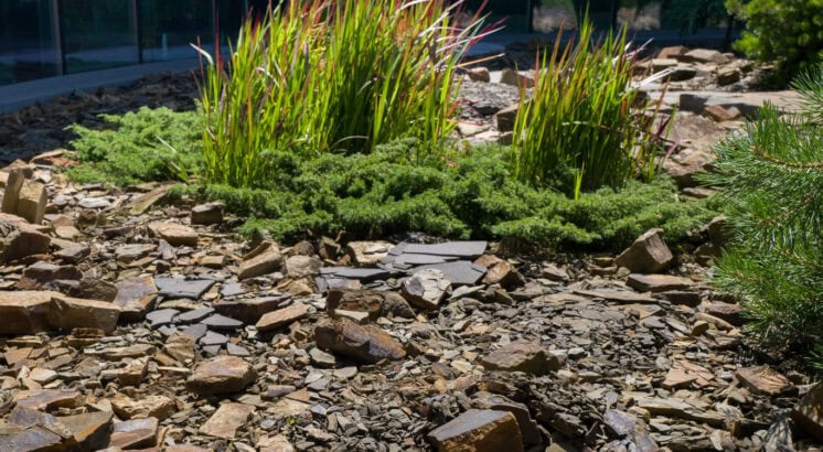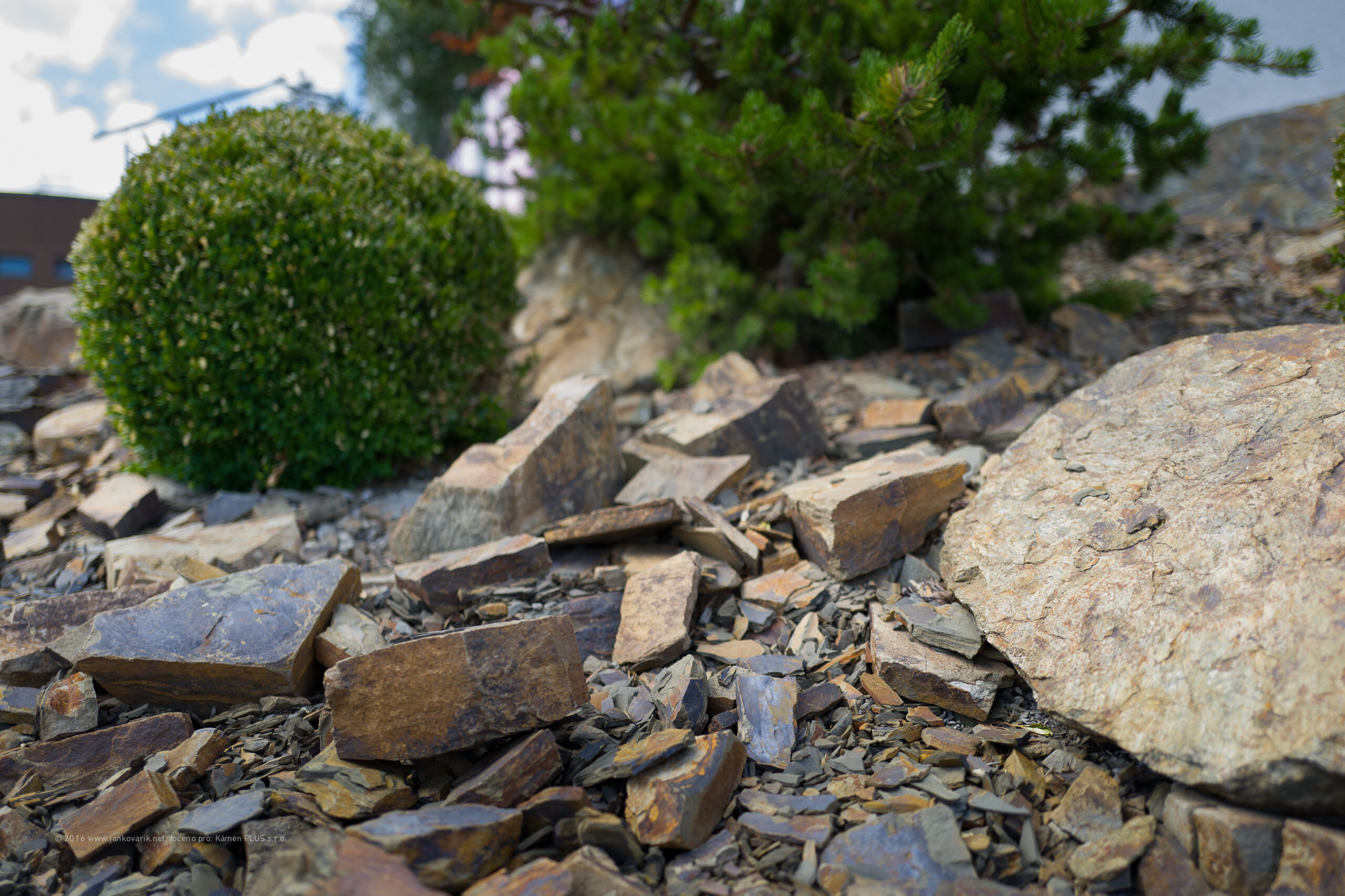Skalky a bezúdržbové plochy větších rozměrů, jako kamenná mulčovací kůra, atp.