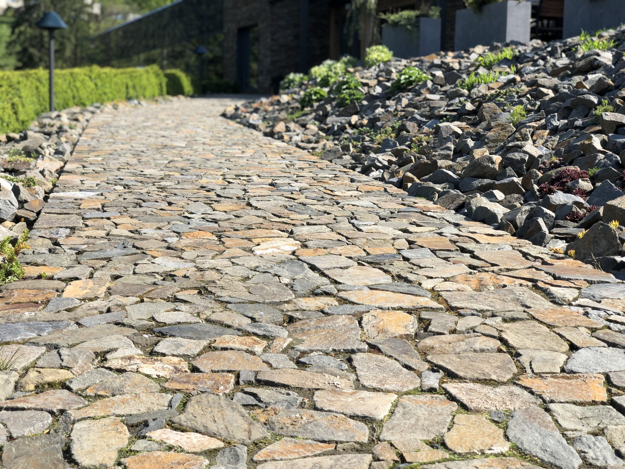 Tento velice oblíbený druh kamene je strojně vytříděn na dvě velikosti. Způsob použití lomového kamene je velmi široký. Od bezúdržbových ploch, přes zdi a zídky, až po skalky, chodníčky a gabiony.