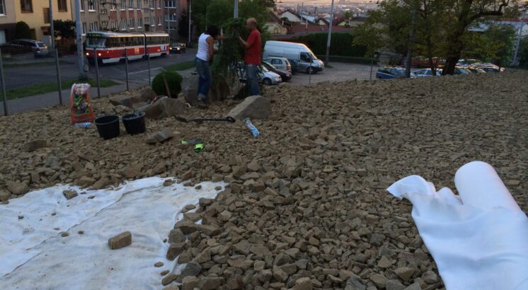 Zabranění míchání zeminy s kameny, prorůstání kořenů. Geotextilie zároveň propouští vodu.