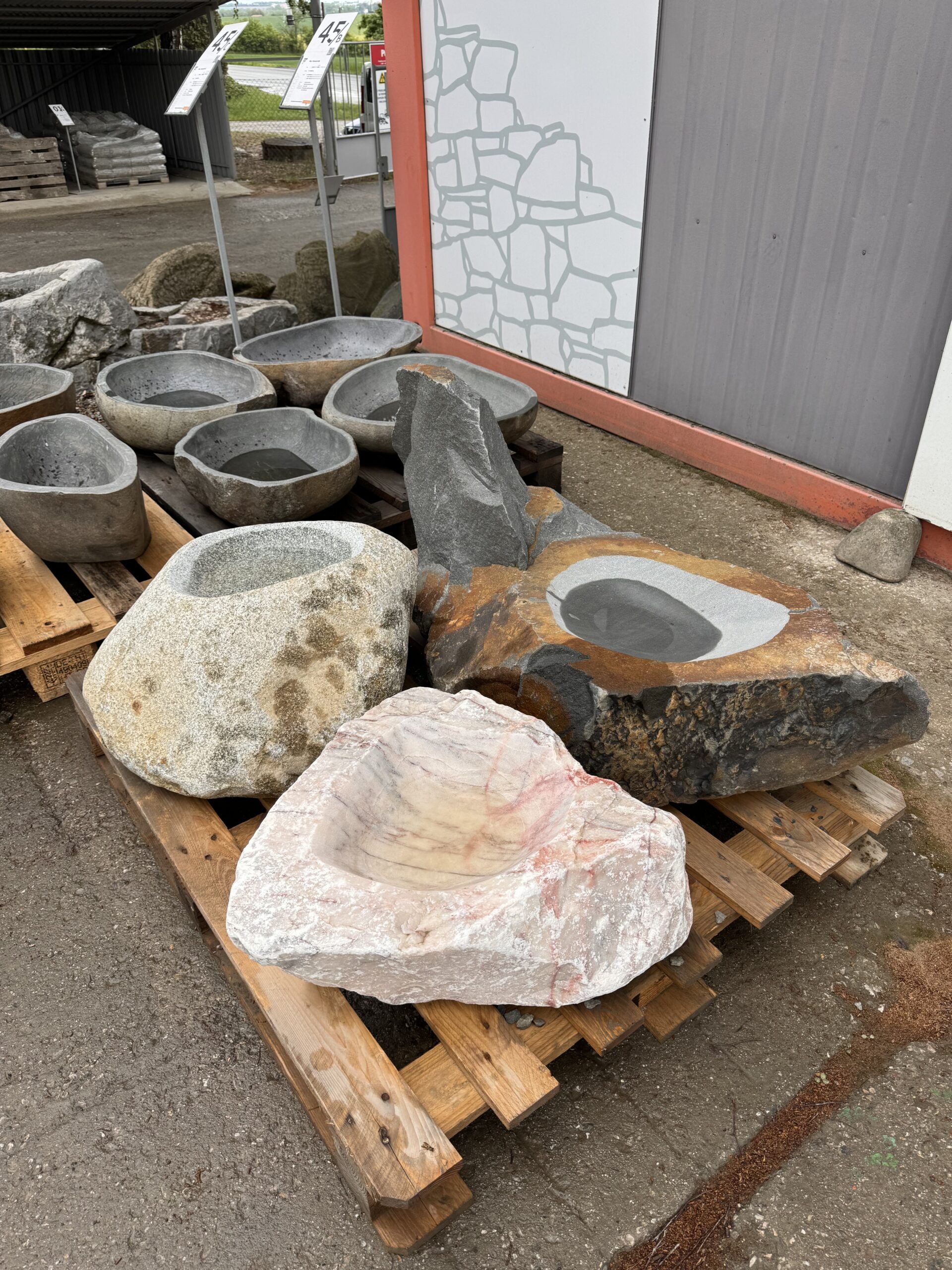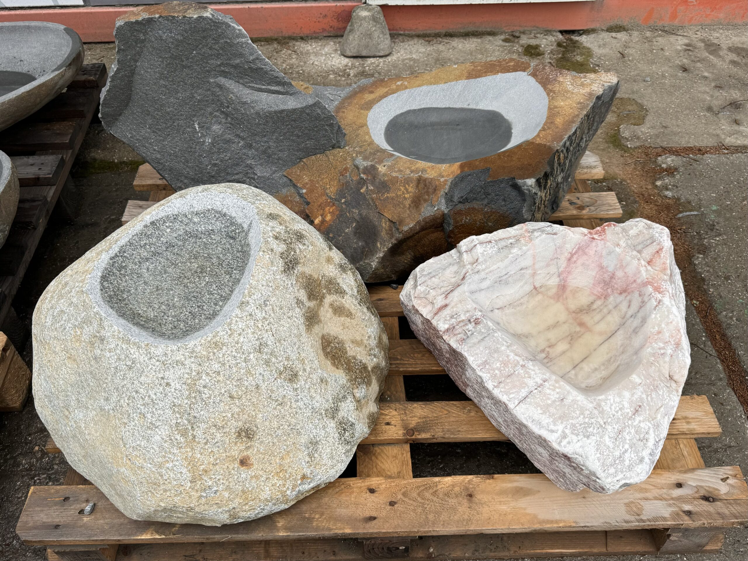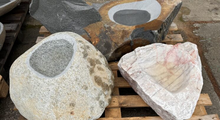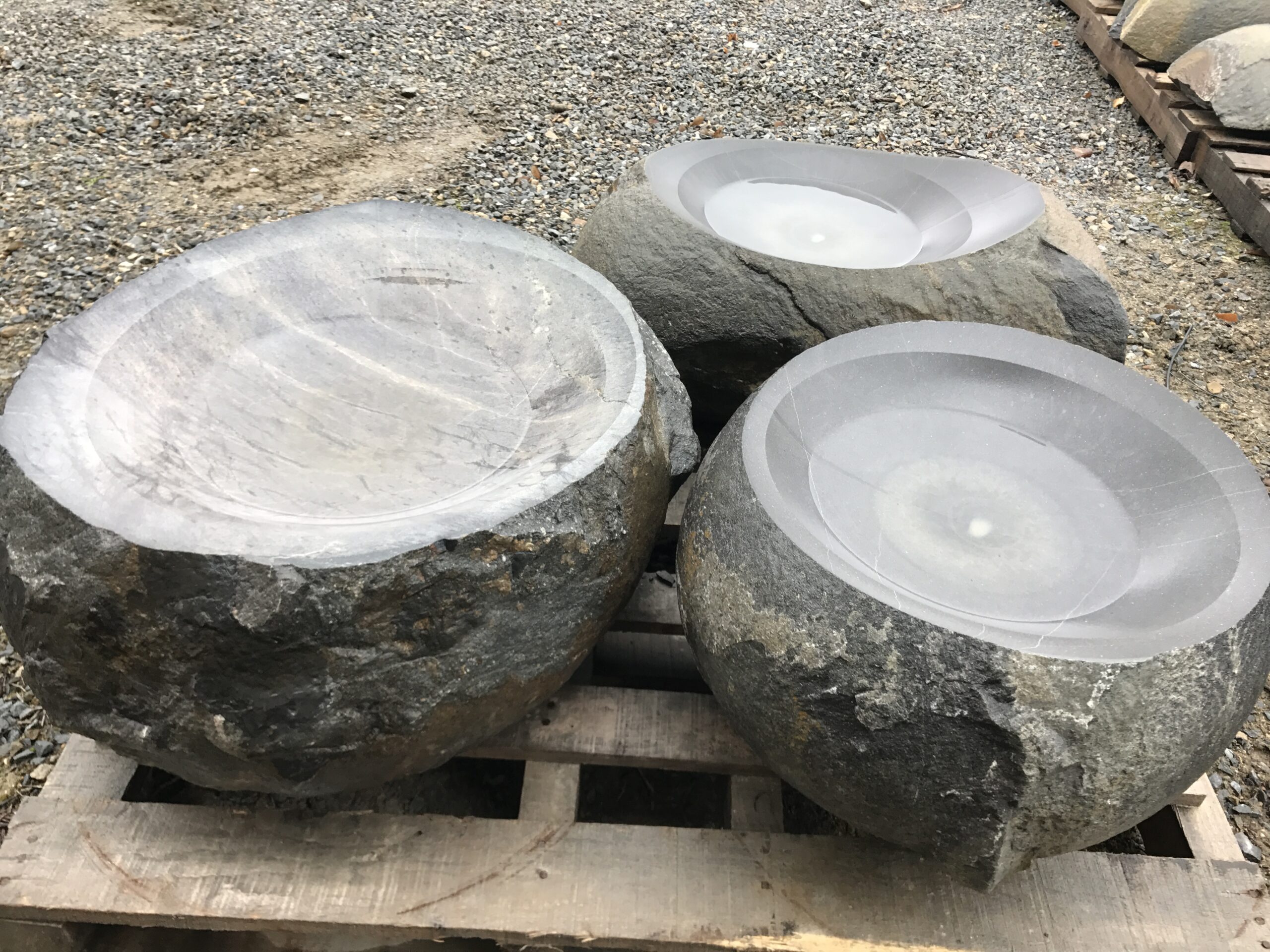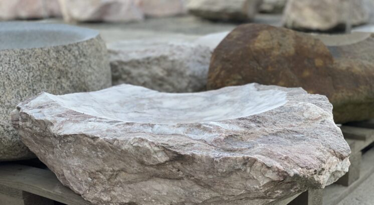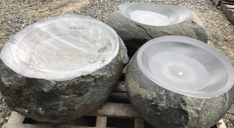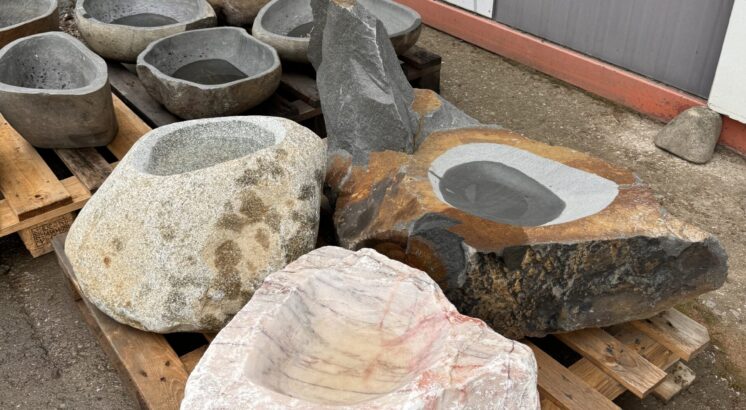 Valouny ale i jiné druhy kamenů a v nich strojně vyfrézované misky pravidelného kruhového tvaru. Tyto misky mohou sloužit nejen jako pítka v exteriéru, ale i jako vodní prvek v interiéru.
