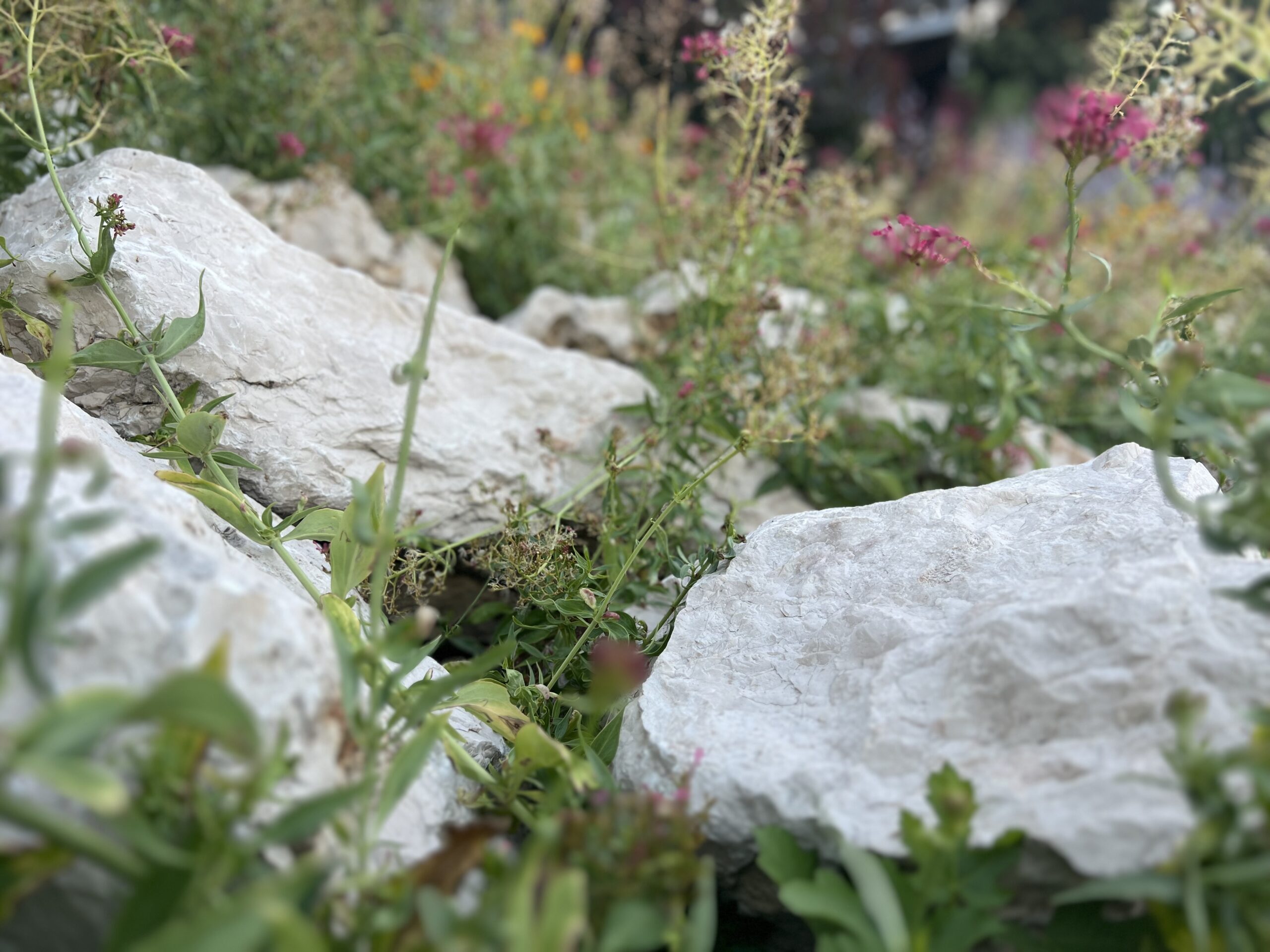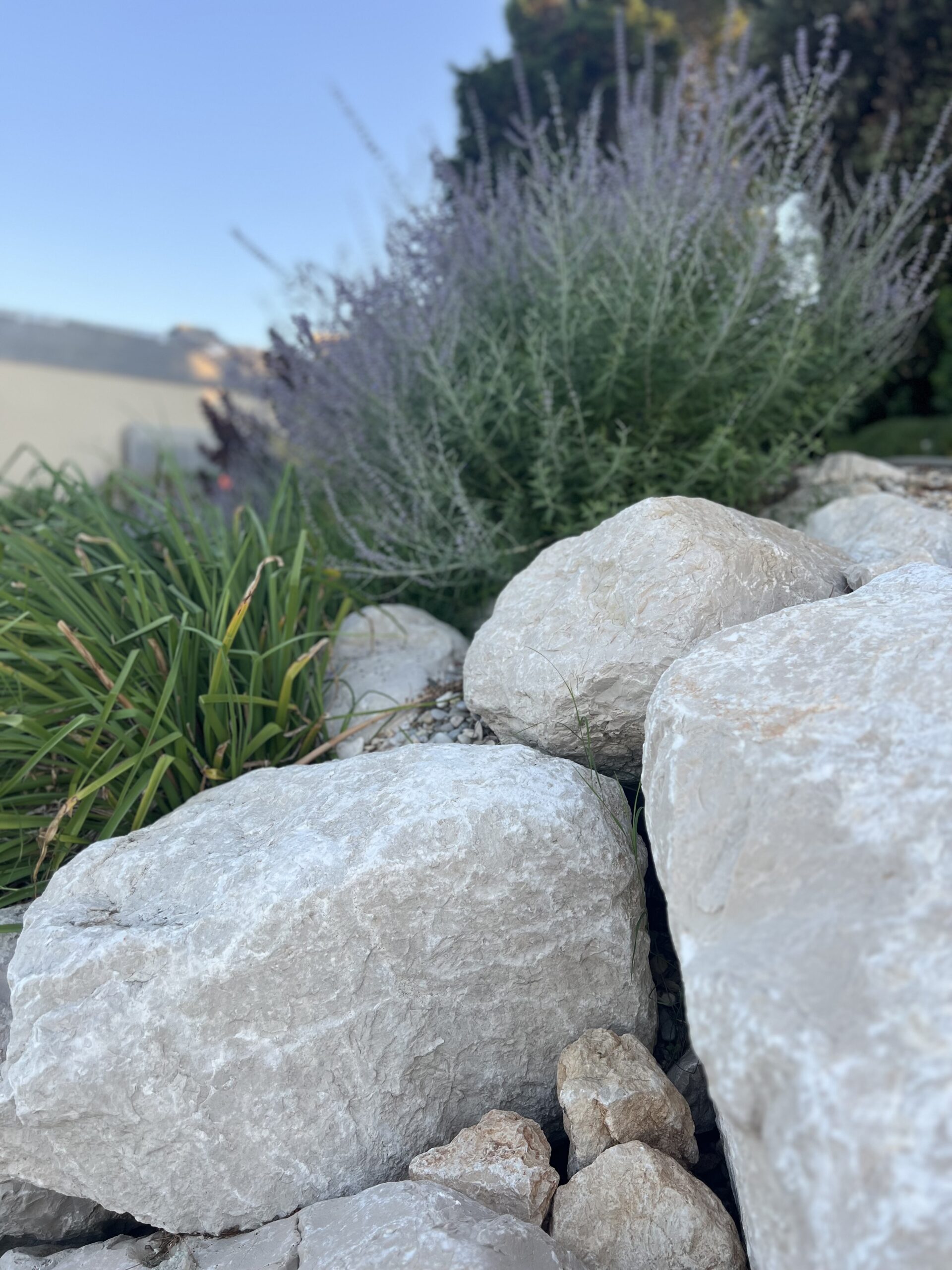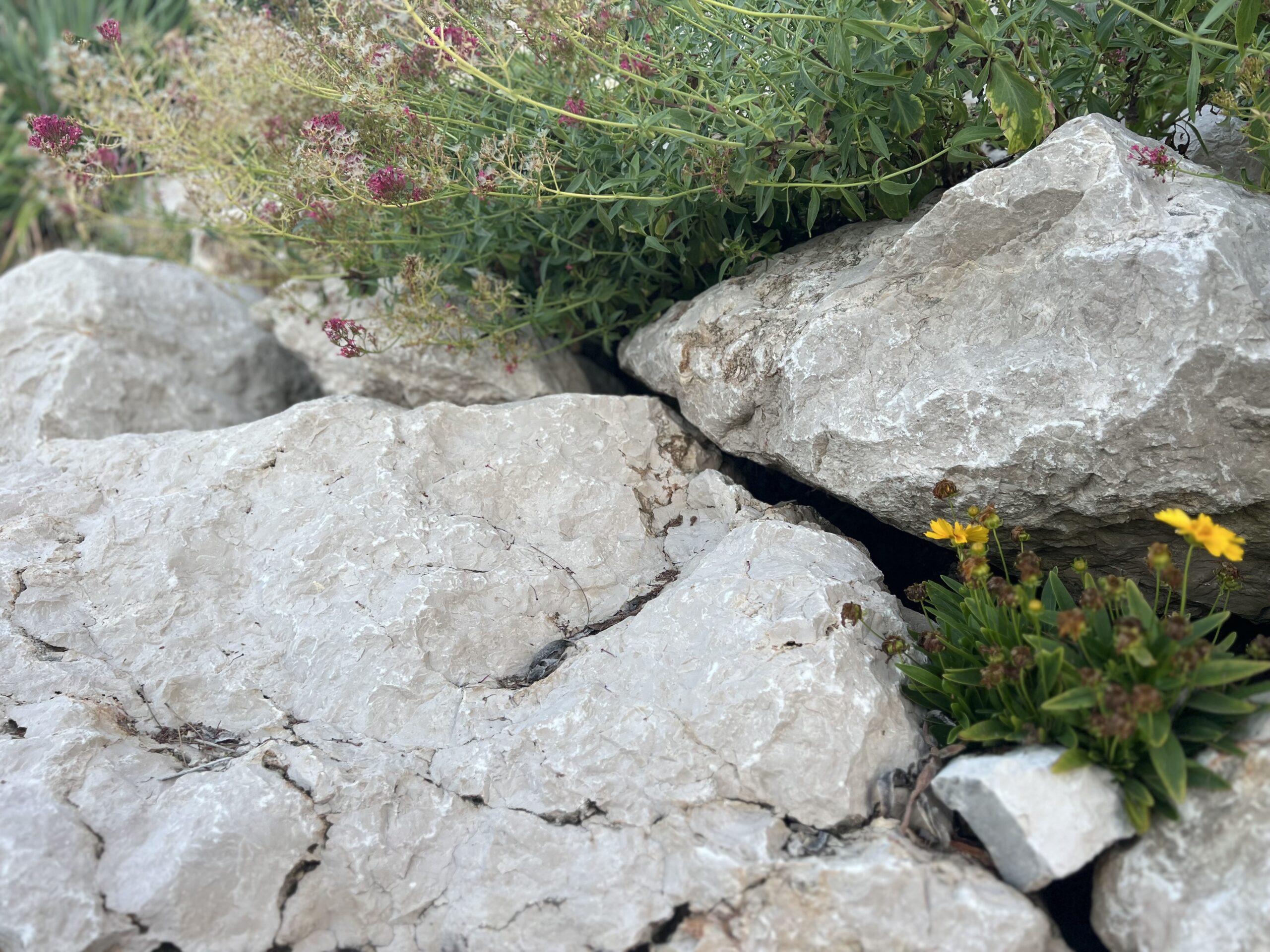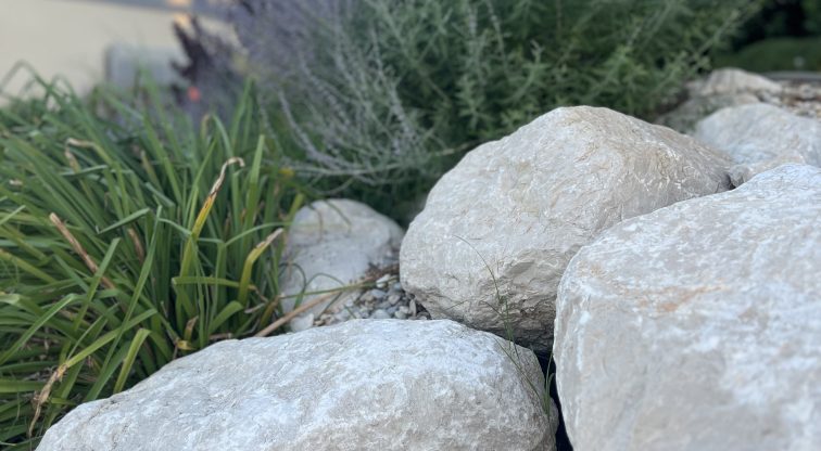 Vápenec v šedo-béžové barvě je zajímavý jednak svým přirozeným tvarem, ale i svou unikátní barevnou kresbou. Perfektně jej lze kombinovat s kusovým kamenem či šedo-béžovou drtí.