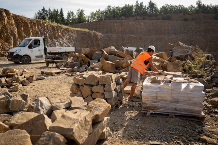 Ručně vybíraný stavební kámen (jako např. zídkový kámen nebo pojezdová dlažba) se zase musí pečlivě vybírat ručně, opracovávat a skládat na dřevěné palety.